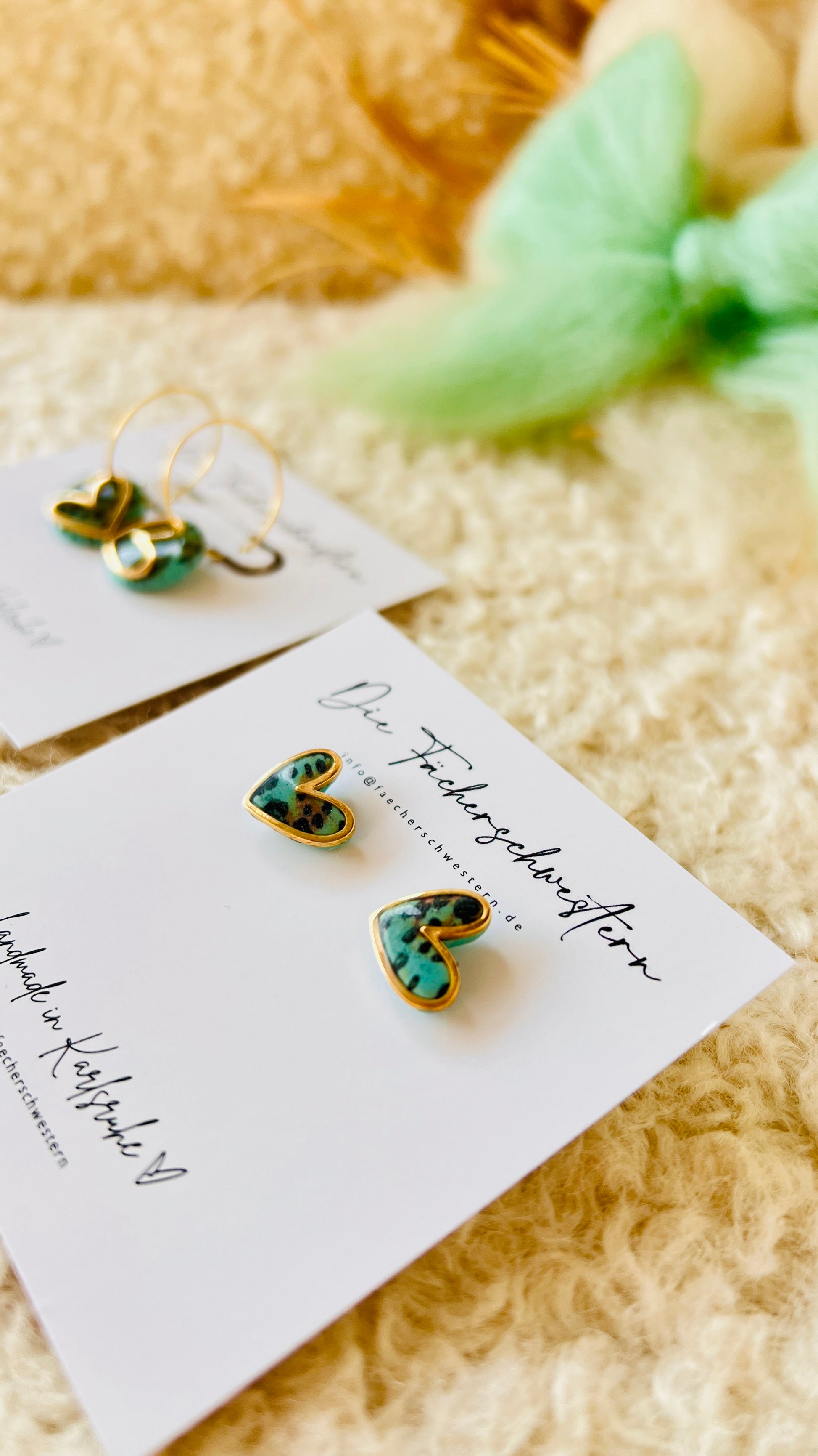 Herzchen Bundle - Creole & Stecker - Leoprint/türkis